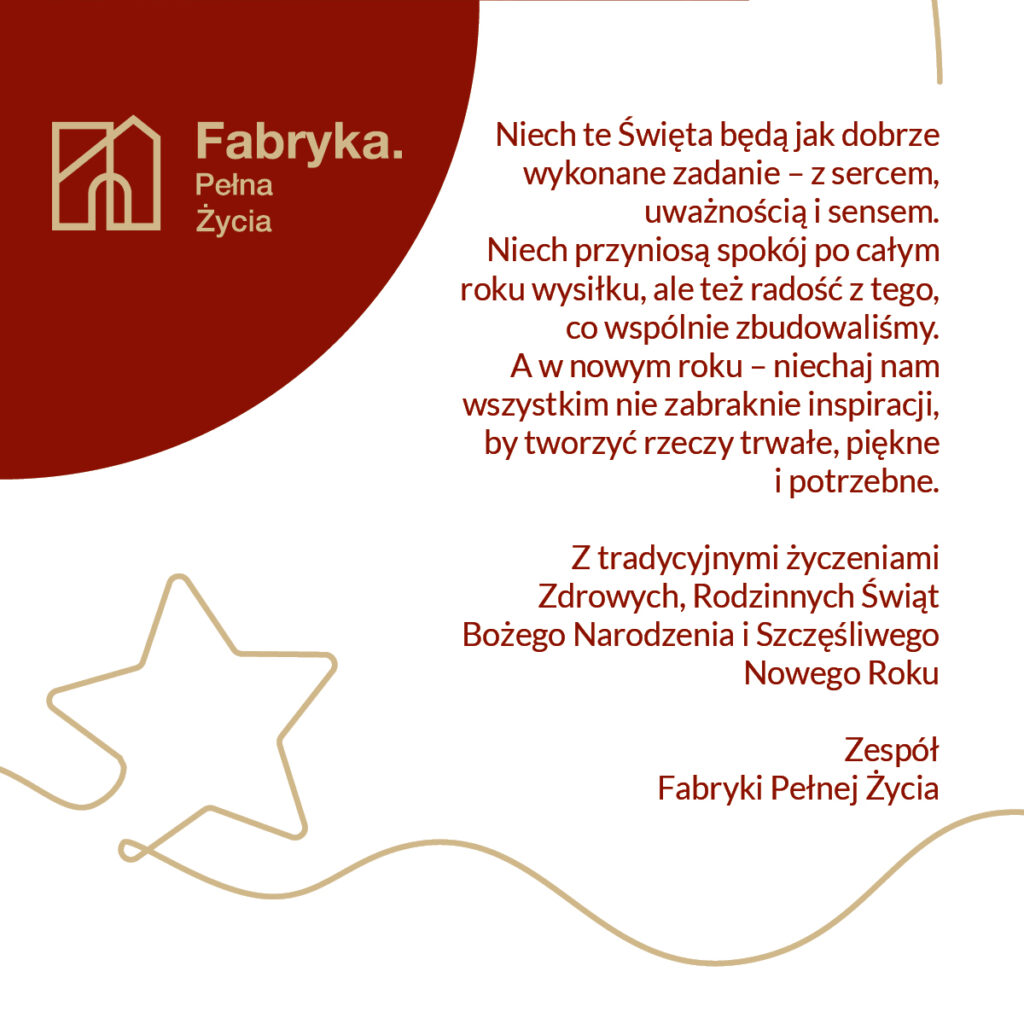 Ogłosiliśmy postępowanie o udzielenie zamówienia pn. „Wyposażenie, wykonanie aranżacji wnętrz i przestrzeni publicznych oraz systemu identyfikacji wizualnej Fabryki Pełnej Życia” na potrzeby projektu „Fabryka Pełna Życia – centrum
