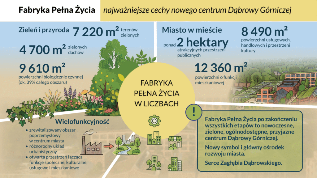 Patrząc na te zestawienia, łatwo zrozumieć, że Fabryka Pełna Życia to coś znacznie większego niż suma pojedynczych remontów czy nowej zabudowy. To faktycznie „miasto w mieście” – autonomiczna, a jednocześnie dobrze zintegrowana przestrzeń, w której będzie można pracować, spędzać wolny czas, budować relacje i po prostu żyć.